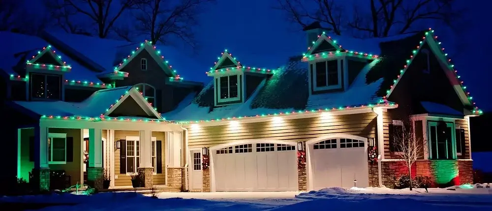 Festive home decorated with professional holiday lights